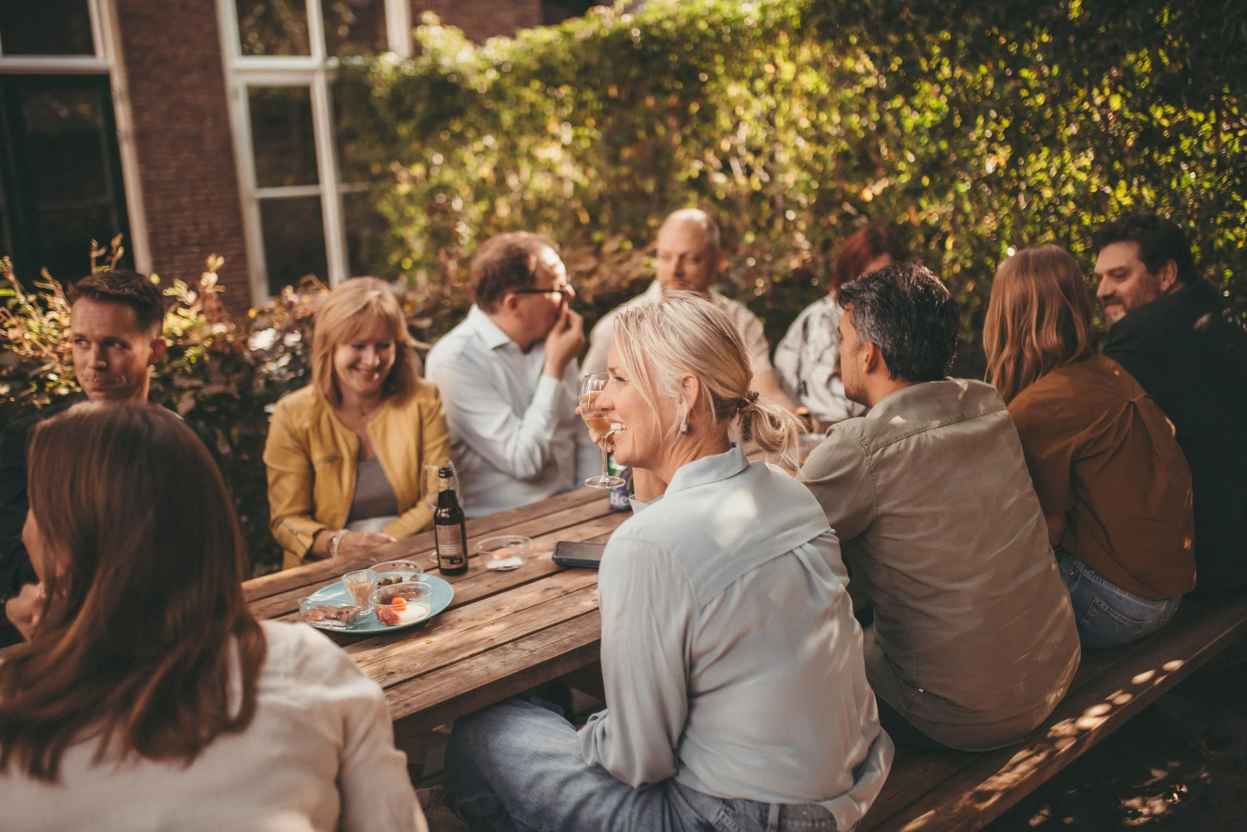 “Elke eerste vrijdag van de maand is het vrijmibo. Vaak binnen, maar als het kan zitten we heerlijk in de tuin.”